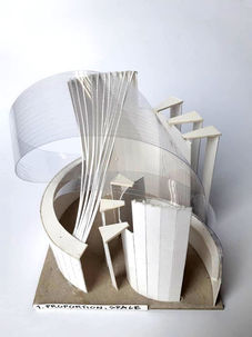 For this model, I chose to do a combination of contrast and materials. Where at the back I've used grey boards to create straight vertical lines while in the front you can see that the sharp triangles are arranged in a random order compared to the grey-board. to further emphasize on contrast 2 very different materials were used, perspex and grey-board with different solidity to further emphasize of contrasting elements.