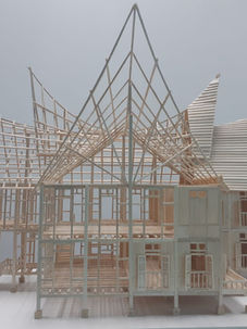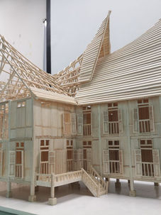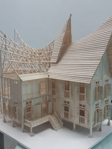 The chosen plan was Gamuda Land Jade Hill Villa where we had change the plan to be quite similar to a Traditional Malay House since our structural material was timber. Besides that, we had change the roof to a Minangkabau styled roof. From the model, half of it is completed where as the other half is left bare without any finishing to have a better view of the structural detailing.